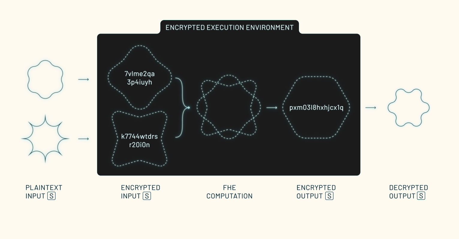 - Private inputs: Data stays encrypted at every stage (submission, execution, and output generation).